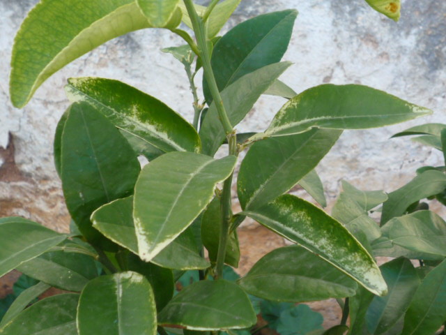 Rispondo ora anche a Marco inserendo una foto della pianta. E' stata piantata in aprile già fiorita e subito ha fruttificato con 10 esperidi. E' ora alta circa 1 mt. Si trova in Puglia (BR). Spero possa aiutare a stabilire il problema delle foglie, che non compare comunque su tutte le foglie. Grazie e ciao G