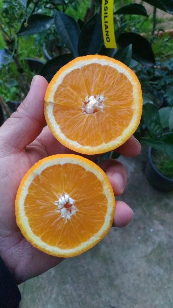 Mi chiedevi come vengono in vaso, questo è ancora in fitocella arancio brasiliano pezzatura poco piu piccola sapore identico a un arancio coltivato a terra.