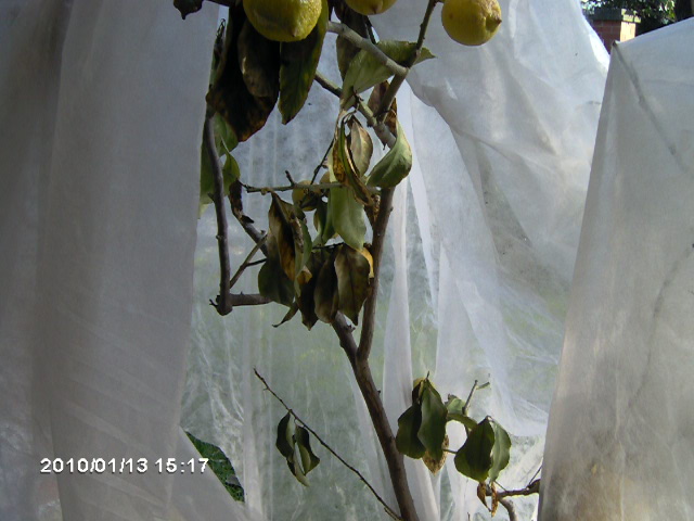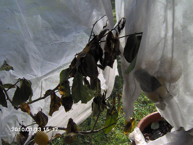 ora la mimosa è nera, quindi penso sia da togliere, e i limoni sono tutti marci, nonostante la copertura