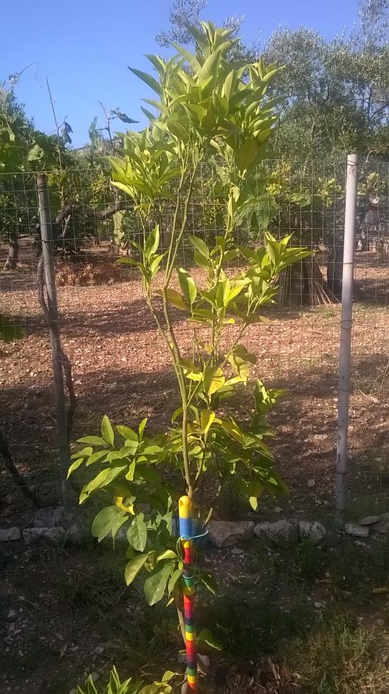 Salve a tutti sono nuovo su questo forum,ho un problema con questo arancio (del tipo tarocco) messo a dimora un anno fa circa e da qualche settimana sta perdendo quasi tutte le foglie,ci sono state parecchie piogge questo mese e quando ho notato che iniziava a perdere foglie l ho concimato con una soluzione diluita di sangue di bue che non sembra aver cambiato nulla.