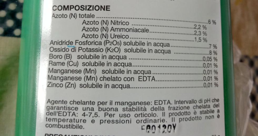 puoi postare le percentuali degli elementi macro e micro del concime. ogni quanto concimi.