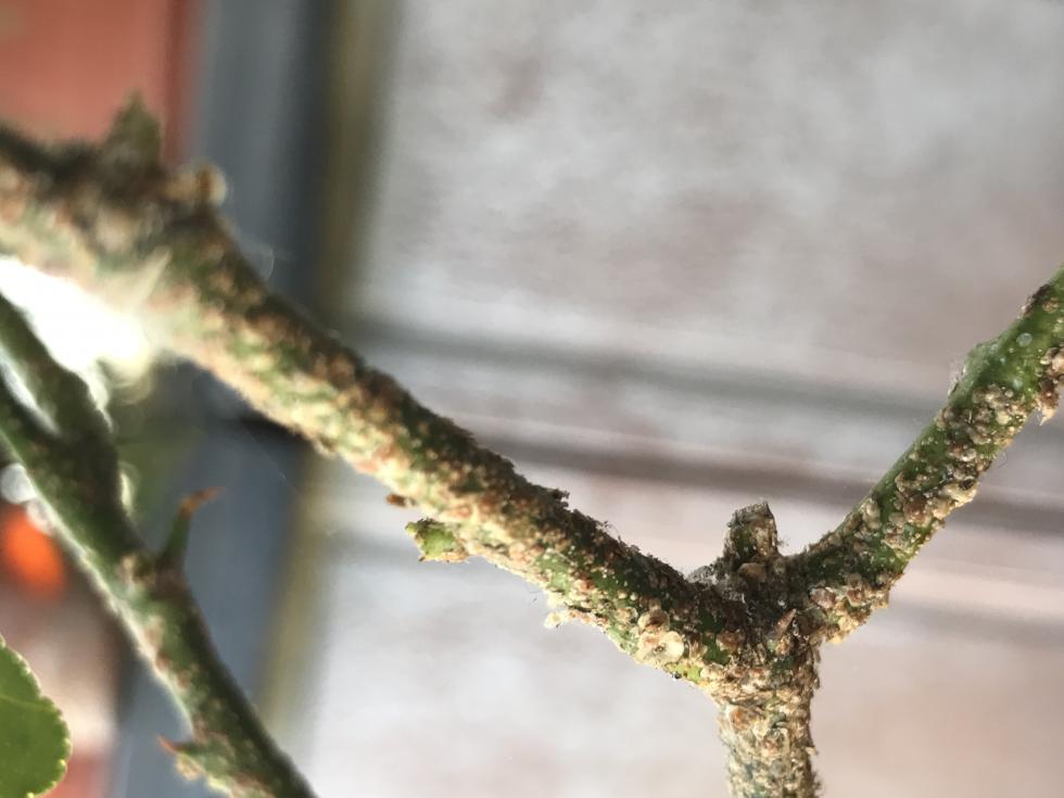 Ciao ragazzi, si tratta di cocciniglia rossa. Se l pianta è piccola basta un po di sapone e un getto d'acqua quella che rimane la puoi togliere con uno spazzolino, se la pianta è grande usa olio bianco.