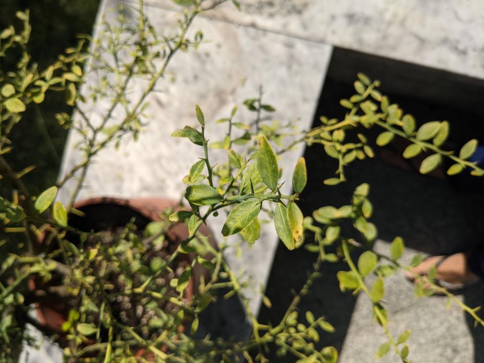 Buongiorno a tutti e tutte, Scrivo per chiedere un consiglio riguardo al mio finger lime. Come vedete dalle foto si presenta con rami e foglie tendenti al verde-giallo, di recente ha iniziato a perderne qualcuna. Durante l'estate non ha fatto nuovi butti. Ultima potatura febbraio 2020, probabilmente fatta male, perché nell'estate dello stesso anno non ha fatto fiori ma solo nuove foglie e rami, a differenza di quest'anno Ultima concimazione aprile 2021 con Osmocote. Esposizione a sud-est, abito in provincia di Massa-Carrara, vicino al mare. Quest'anno abbiamo avuto una primavera fredda e piovosa e un estate secca.