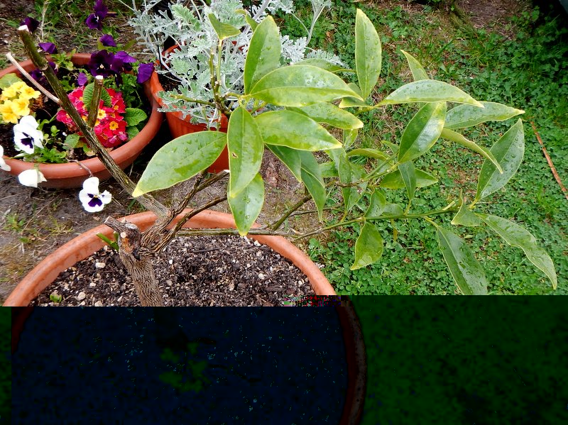 mentre il qunquat sta soffrendo terribilmente, aveva anche gettato rami al di sotto dell'innesto che ho tagliato ma è giallo e non fa ne foglie ne fiori