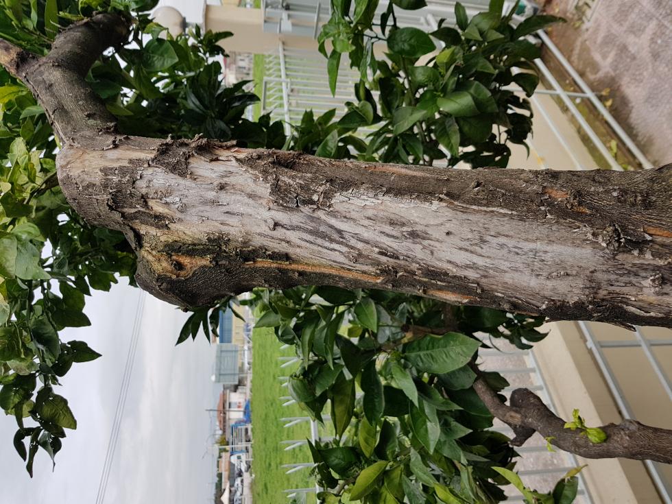 Di sicuro non lo perderai per questi piccoli danni Guarda questo agrumi-f88/la-mia-collezione-di-agrumi-t88086-520.html Fai crescere la vegetazione piu avanti lo poti per mantenere la forma. Togli la corteccia morta che si stacca facilmente, se vuoi dai un po di rame o poltiglia e poi una spennellata di calche sul legno senza corteccia. Buon lavoro
