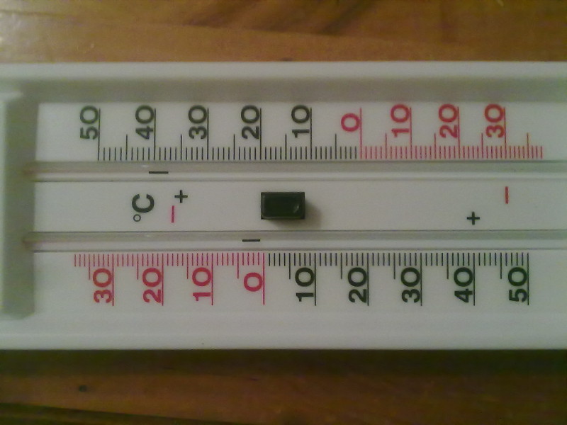 quella attuale si guarda come tutti i termometri guardando a che punto è la sostanza (un tempo il mercurio) per rassettarlo lo devi premere e si dovrebbe azzerare io ne ho diversi da anni il tuo mi sembra nato male