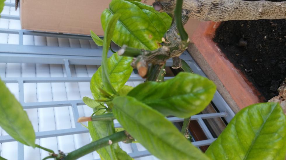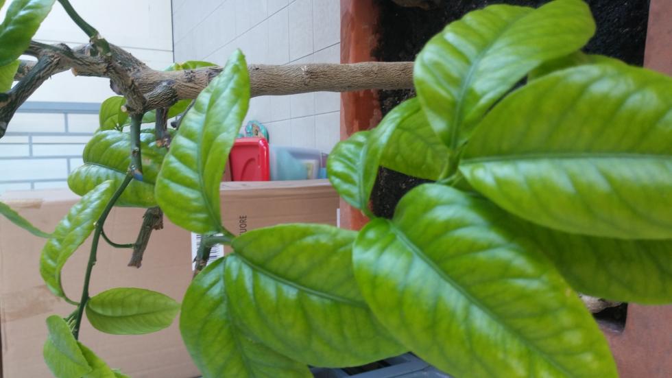 Quelle che vedi sono le foglie della ripresa è questo che mi dispiace quindi foglie nuove ho concimato l' ultima volta 2 mesi or sono quasi con chicchi di sole 2 cucchiai su un vaso 50 x 50 x 50