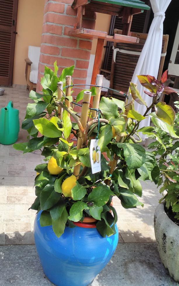 Alessandro1944 ha scritto: Grazie. Sicuramente è in succhio perché già in vivaio abbiamo tagliato un 'succhione'. Quanto al terriccio l'ho acquistato contestualmente al limone (contiene anche pietra pomice); al momento lo ha parzialmente usato per riempire a metà il vaso blu (è un vecchio orcio da olio che ricordo dall'infanzia e che ho rimesso a posto e dipinto per nascondere le "ferite") allo scopo di realizzare una base di appoggio. Per il nuovo contenitore vedo cosa mi riesce di rimediare. un vaso in coccio anche di tipo industriale va bene. la pomice nel terriccio va più che bene , tiene arieggiato il terreno.