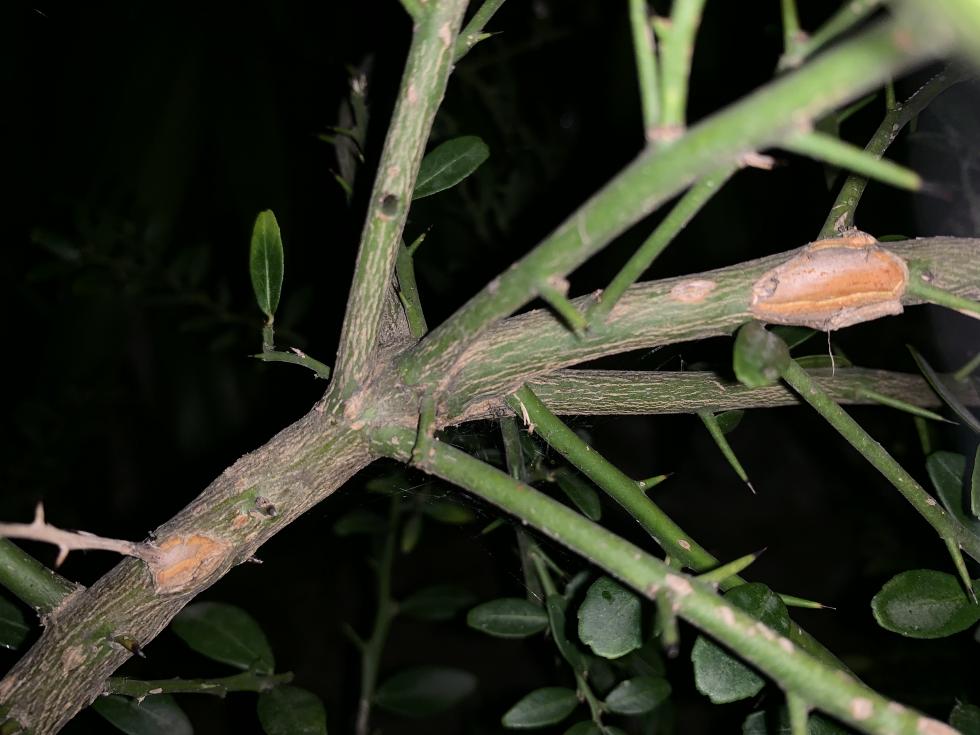 Ci sono lesioni sui rami (è pianta giovane) alcune sono semplici spaccature con fuoriuscita di gomma, altre sacche con tessuto color ocra visibile ma asciutte.