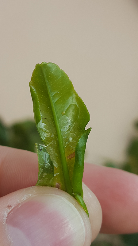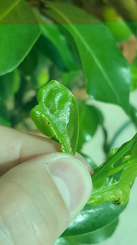 le foglie nuove del mio limone, presentano un problema...si accartocciano e nella parte posteriore sono ricoperte di una pellicola trasparente lucida dove al di sotto ci sono alcuni vermetti...