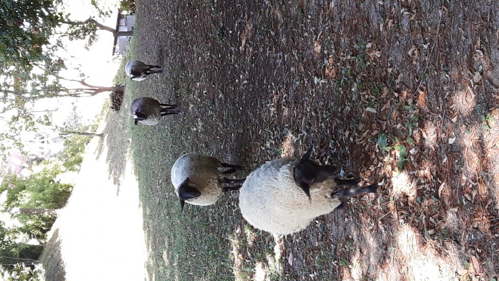 Le mie quattro pecore, in questo periodo di siccità vagano per tutta l'area (13.000mq) : sono rimaste le ortiche e poche altre erbe che sembra non apprezzino. Si nutrono di foglie, mele, pere, susine cadute a terra e di edera ed una palettata di fioccato a giorni alterni.