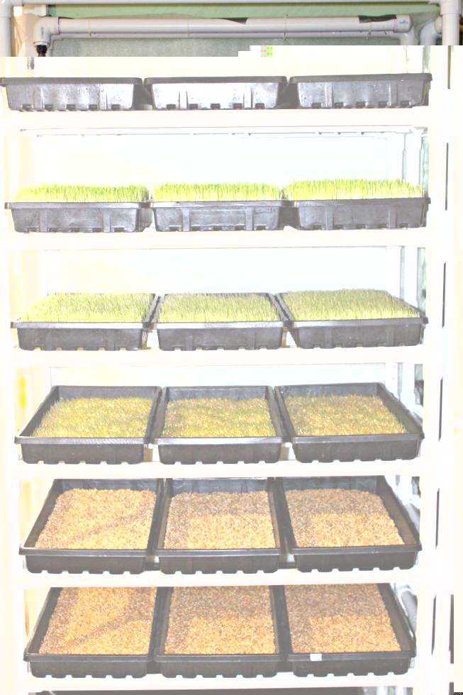 È la prima volta che sento questa tecnica e mi incuriosisce... Secondo me non è tanto difficile da realizzare, per far germinare grano, orzo e mais basta un fondo morbido (cotone, carta assorbente, vari strati di carta igienica) sempre zuppo di acqua... Ovviamente il seme deve stare sotto un velo di acqua nei primi periodi e hanno bisogno di calore (non per forza di luce solare). Pongo una domanda, visto che le sementi che sono presenti nei mangimi sono spesso spezzate e non germineranno, per questo sistema si devono utilizzare sementi selezionate? Quelle preparate per la semina per capirci