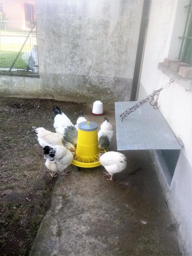 , appena l ho messo questa mattina non si sono staccate dalla tramoggia per almeno 15 minuti !! in foto si vede il Gallo ed alcune delle mie Sussex