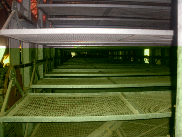 Come puoi notare la struttura è immensa ha dei bruciatori a gasolio che riscaldano in inverno e in estate hanno un sistema di spruzzi d'acqua che oltre ad apportare umidità abbassano la temperatura interna di circa 10/12 gradi rispetto alla temperatura esterna. La bigattiera è su più livelli in modo da sviluppare una grossa superfice, l'operatore sta davanti e con una pulsantiera fa scorrere i cestelli dove sono posizionati i telaini con le larve di baco, in questo modo avviene l'alimentazione. Quando sono piccole le larve, le foglie vanno sminuzzate con un trituratore mentre alla fine vengono date foglie comprese di rami.. Per ogni altra informazione chiedi pure, sono sempre a tua completa disposizione.