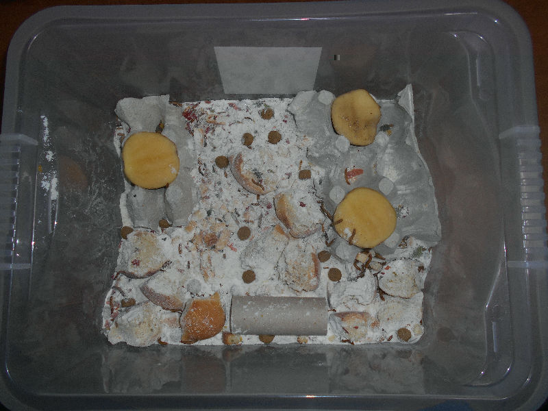 Buonasera a tutti!! Sto iniziando un mio mini allevamento ho acquistato 100 grammi di Camole Della Farina, da un sito on line... Dunque li o posizionati in un contenitore da 5 litri in plastica come base di alimento: