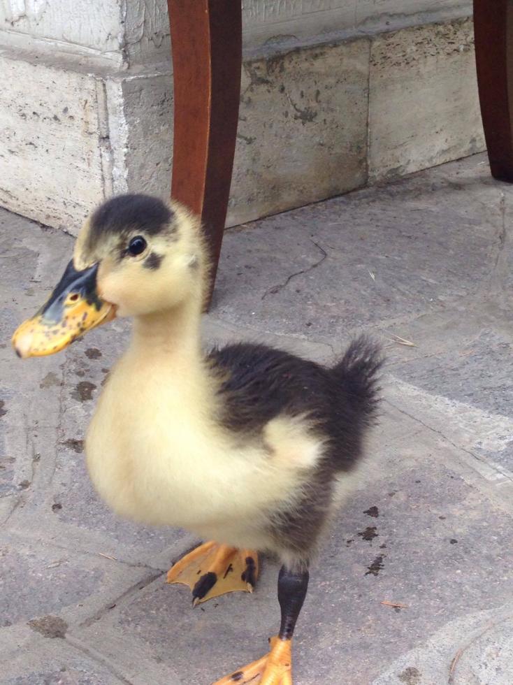 , la cosa strana e che: l'anatroccolo segue me , l altra segue l anatroccolo per cui di conseguenza mi seguono entrambe ora quando mi muovo, pero quando non c'e l'anatroccolo , l anatra più grande non mi segue nemmeno a pagarla, oppure mooolto difficilmente, come è possibile che sebben moolto più grossa dell anatroccolino , è lei che segue lui anziché il contrario? . quando stanno insieme l anatra bianca non è super affettuosa anzi sembra nn cagarlo, pero appena l anatroccolo si muove gli va dietro a ruota come una pecora.