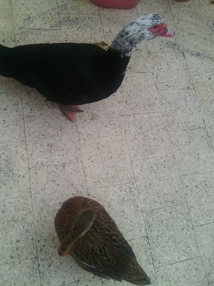ti nasceranno dei mulard...ibridi sterili ottenuti dall'incrocio dell'anatra muta + germano reale, molto carina tutto sommato la coppietta:)