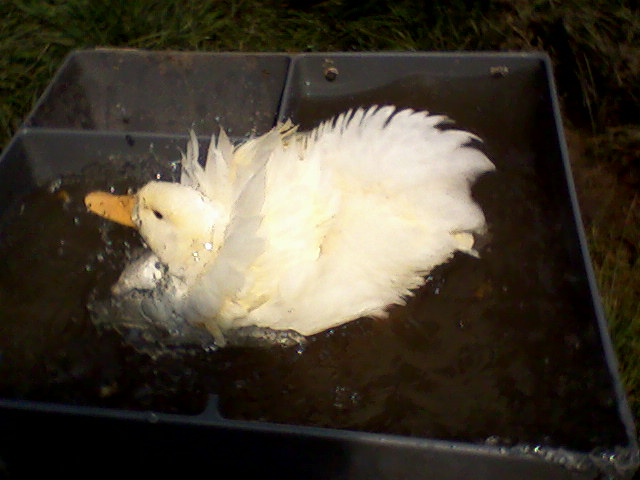 Sì xGangrelx, non ci starebbe nemmeno un'oca da sola credo! Già è il minimo per due anatre semi-adulte (infatti l'ho cambiata appena ho potuto) Raffaele89, comunque quando erano ancora due piccoli anatroccoli avevano una vaschetta molto meno profonda e dopo il bagno li asciugavo un po'