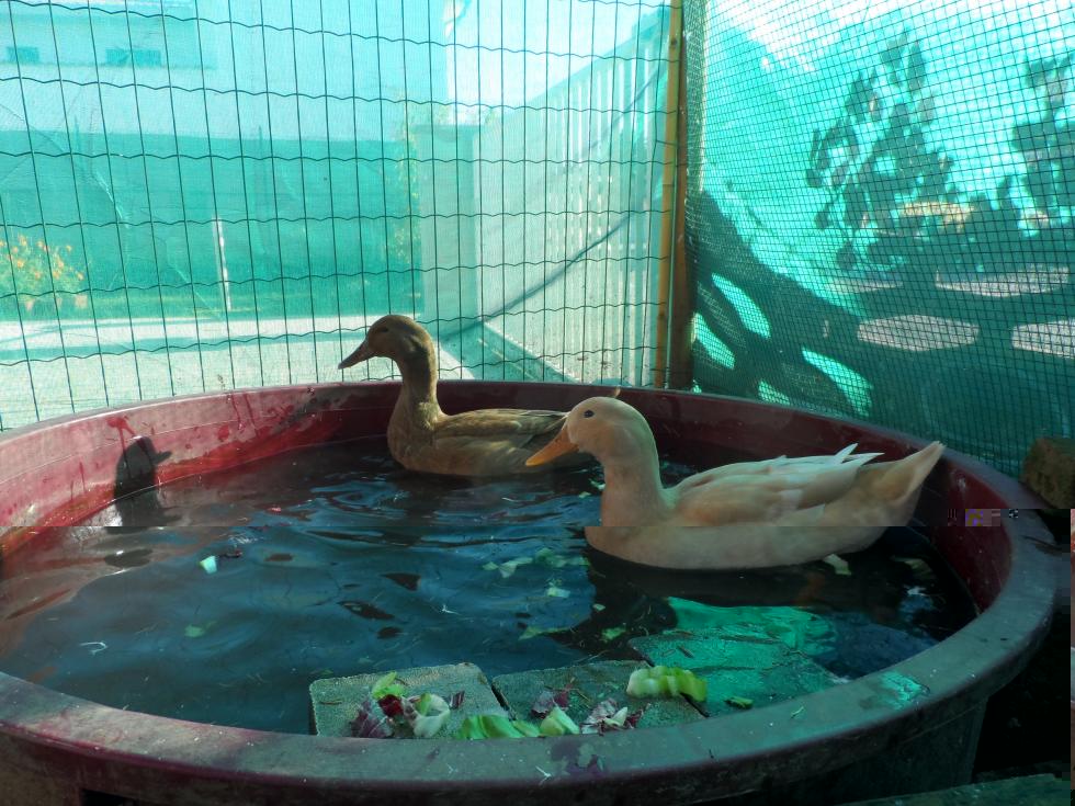 Si sono ambientate nel nuovo recinto e quando hanno messo le penne ho attrezzato un laghetto con una tinozza di 1m.