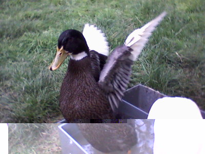 Che peccato, mi piacciono un sacco quando sbattono le ali e in questi ultimi giorni lo fanno davvero spesso, si alzano sulle punte delle zampe e si impegnano un sacco... stanno tutto il giorno all'aperto, ho paura che quando impareranno a prender la rincorsa riusciranno a sollevarsi. L'anatra scura ha le ali un po' più sviluppate e mi sembra anche meno pesante dell'altra... Scusa la qualità delle foto, son fatte col cellulare e non è facile cogliere il momento in cui hanno le ali distese!