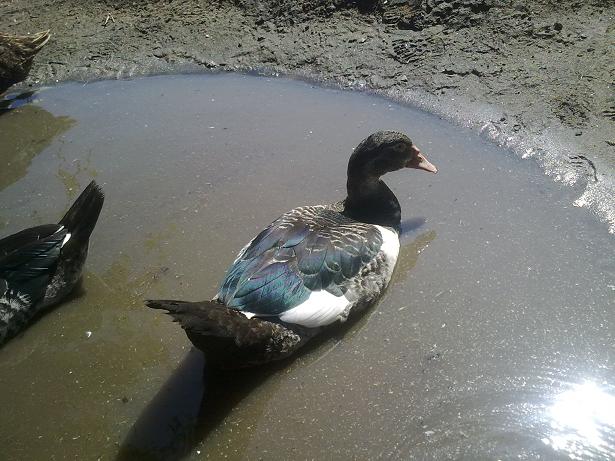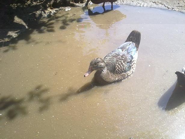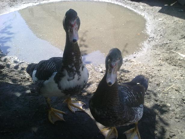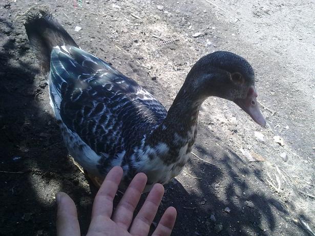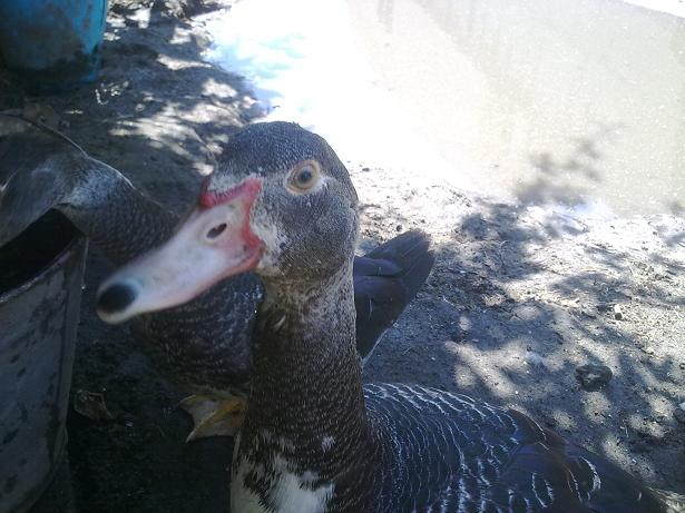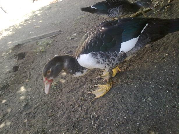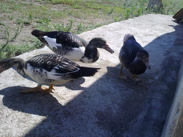 Queste sono le tre anatre mute barrate di cui allegai la foto appena le acquistai (erano gialle con becco scuro e secondo qualcuno non erano anatre mute perchè avevano il becco scuro :lol: ), sono due femmine ed un maschio proprio come speravo. Data la mia esperienza con queste tre anatre mute devo dire che non bisogna cercare di distinguere il sesso da piccole per le dimensioni, perchè la femmina scura è sempre stata la più grossa da piccola ma poi il maschio l'ha superata ed è diventato più grande di lei.