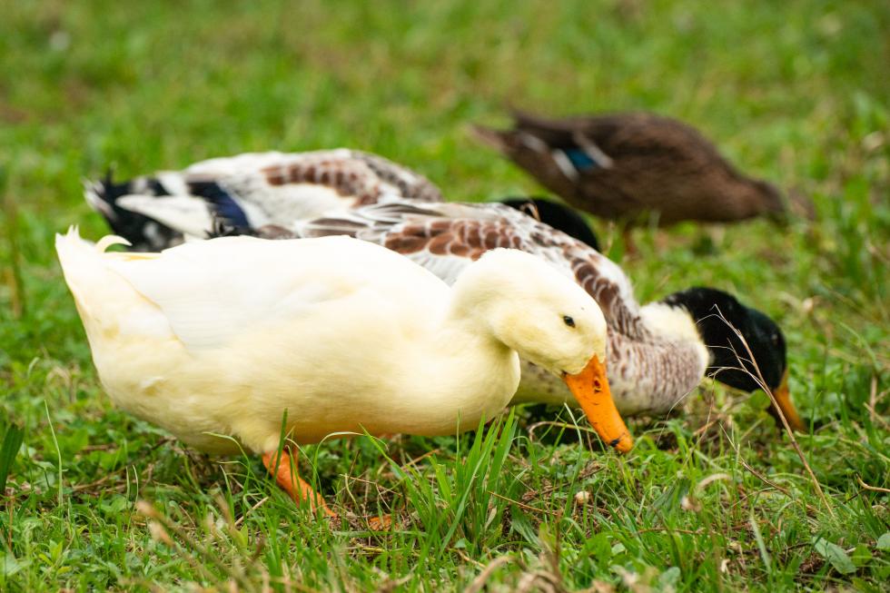 Anche la bianca è un maschio. Ricapitolando hai tre maschi e una femmina. La femmina è l'anatra marrone di piccola dimensione ed è un germano reale.