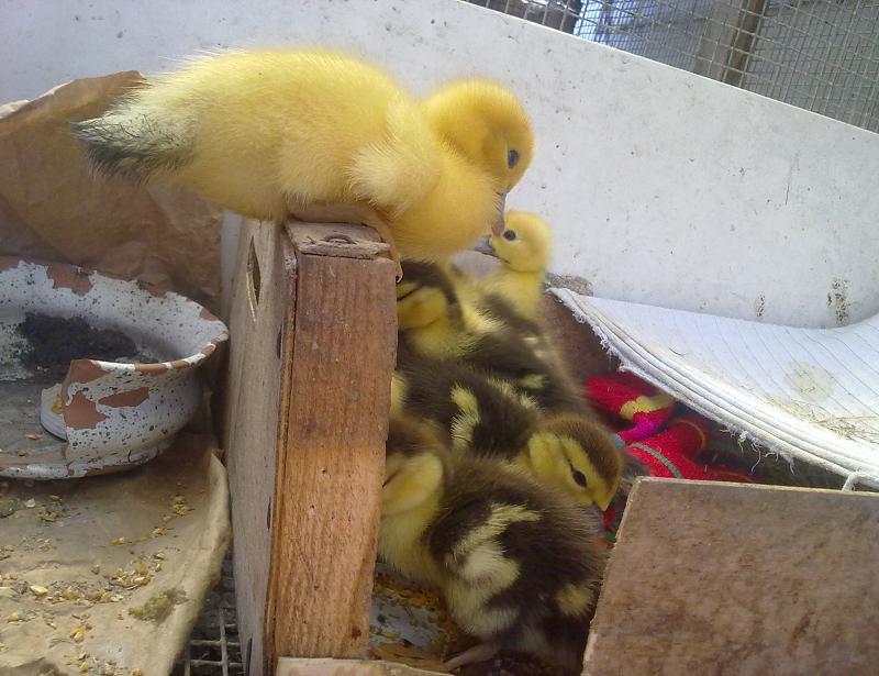 Salve a tutti, vi posto le foto dei miei 11 piccoli di anatra muta (4 colorazione barrata cioè gialli con becco nero e 7 colorazione selvatica cioè gialli e neri) un pò sfortunati dato che la madre dopo averli covati e fatti schiudere li ha abbandonati nel nido, e quando ho provato a metterli insieme li ha attaccati. Me ne sto occupando io, e armandomi di pazienza gli dò il mangime inumidito, gli ho creato un abbeveratoio ''anti-bagnamento'', e la sera li metto in un secchio con una copertina di lana per tenerli caldi siccome a questa età sono delicatissimi e rischiano l'ipotermina soprattutto se bagnati.