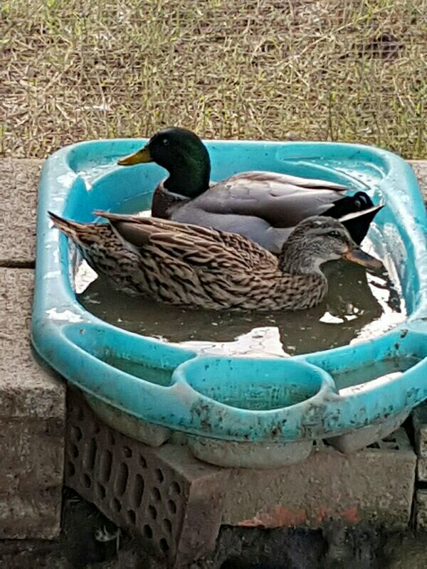 Taky13 ha scritto: Beh..si sei stato sfortunato..anche il mio collega ne comprò due all'allevamento dove ho comprato le mie galline..ma risultarono due femmine così ne portò una indietro e gli diedero un maschio..la coppia ha funzionato ed ad aprile gli sono nati 16 anatroccoli..beh la storia poi già l'ho racconta apparte i mie Burro&Cacao non se ne è salvato uno.. Cmq è vero l'acqua nn dura molto..a me nn fa neanche in tempo a diventare verde..come la cambio si divertono a tuffarsi dentro e praticamente metà è bella e che sprecata..quindi il giorno dopo devo rabboccare poi ogni tre quattro giorni la devo cambiare completamente..cmq di ciò ne sta beneficiando un percoco che è lì vicino al recinto che si becca bacinelle e bacinelle di acqua e liquami..nn è mai stato così verde..  Cmq si sa che con le anatre e così..poi più e piccolo lo specchio d'acqua e peggio è..infatti a breve troverò una soluzione più consona..anche perché voglio che possano nuotare e nn solo stare in ammollo..  ahy, ahy, ahy qui ci scappa il laghetto