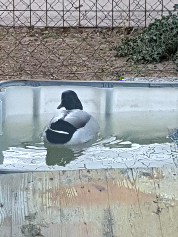 Praticamente è stato ignorato..!! Ì due adulti hanno continuato a bere dal secchio mentre i piccoli si sono indeboliti..martedi infatti l'acqua dell'abeveratoio era ancora limpida, cosa impossibile con delle anatre..il caso ha voluto che sempre martedì ho preso il secchio e ci ho innaffiato il Limone lasciandolo vuoto..senza secchio i due genitori avendo sete hanno capito a che cavolo serviva l'abbeveratoio..!!