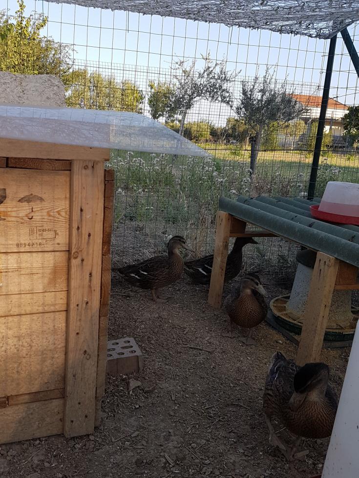 Oggi pomeriggio ho liberato gli anatroccoli e la loro mamma..avevano ormai combinato uno schifo tra fango e cacca.. Il padre li ha accolti tranquillamente..anzi sembrava nn vedesse l'ora.. Ho ripulito la capanna e messo tanta paglia pulita.. Ora speriamo vada tutto per il meglio..