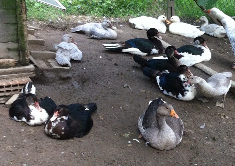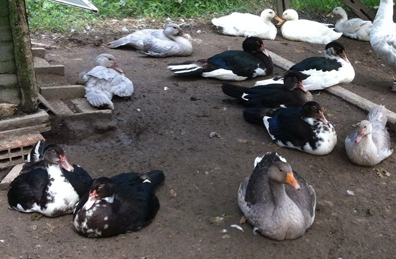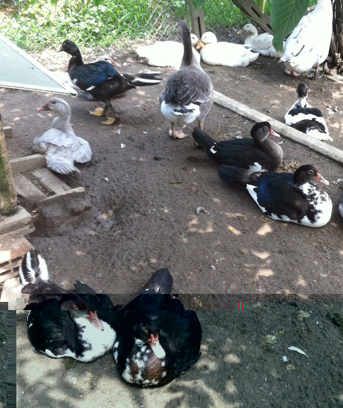 Ciao Giulia queste sono le anatre mute nate dal resto delle uova che ho inviate anche a te. Le bianche e nere sono nate da padre grigio perla puro e madre bianca commerciale, mentre le grigie che si vedono sono nate da padre e madre grigio perla puro. Comunque pur essendo nate insieme le nere sono molto più grosse..