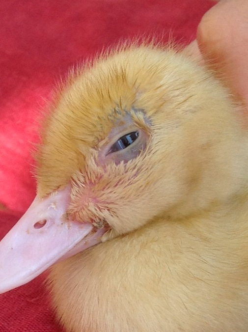 Sono quasi due giorni che ci hanno regalato due anatroccoli, volevo postare le foto per chiedere consiglio a voi su che razza siano ma ora è sopraggiunto un problema molto più grave. Da stamattina un anatroccolo non apre completamente un occhio, QUALCUNO SA DI COSA SI TRATTA? COSA POSSIAMO FARE? È COSÌ PICCOLA.