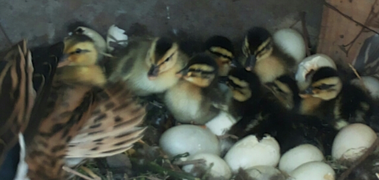 Praticamente ci ha messo 35 giorni per far schiudere le uova..ma nn n'è che hai delle anatre mute con i germani..? Potrebbero essere nati dei mullard...