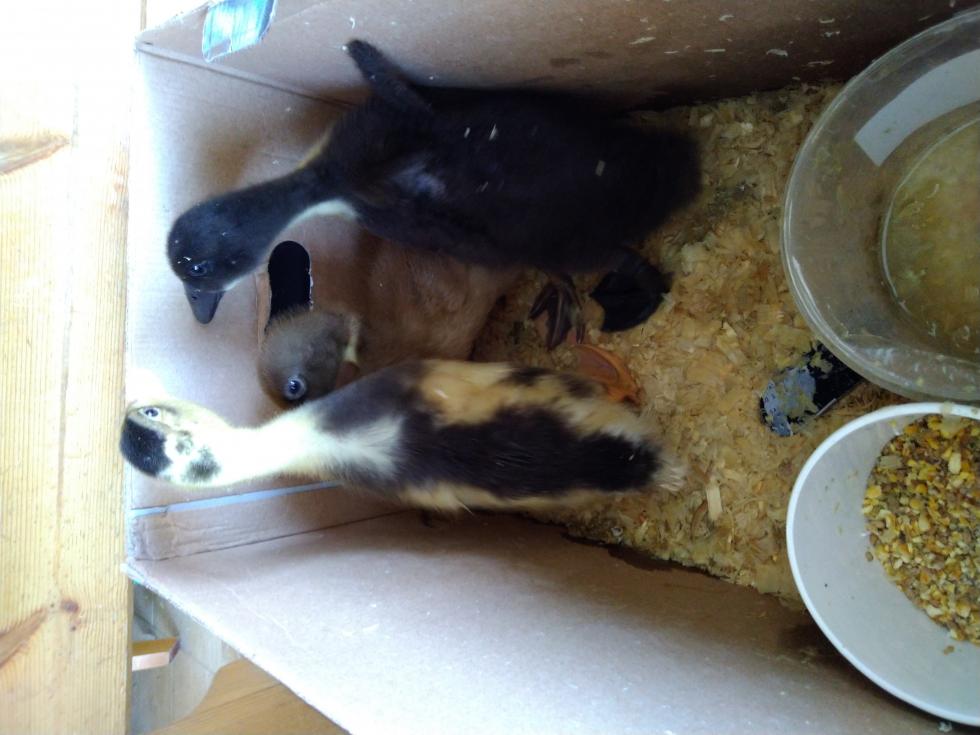 Niente, l'anatroccolo non ha superato la notte. Ma siccome non mi do per vinto ho preso altre tre femmine da un altro venditore. Queste sono un po' più grandi... Vi sembrano abbastanza cresciute per poterle inserire con gli altri animali? Tra gli altri animali ho: 2 pulcinotti di 1 mese, 4 galline adulte e l'anatra maschio della foto iniziale che ha superato i 3 mesi di vita.