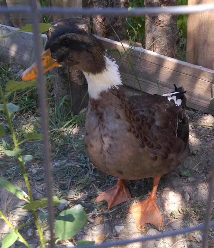 Alla fine l'anatra in foto ha sviluppato un bel ricciolo sulla coda  e al momento sta cambiando il piumaggio in un grigio più chiaro. In ogni caso ho visto il venditore e mi ha confermato essere un incrocio tra Germano e Pechino! Ne ho approfittato ovviamente per procurarmi un'altra femmina (sempre ibrida) sperando che cresca e mi facciano diventare nonno di qualche anatroccolo
