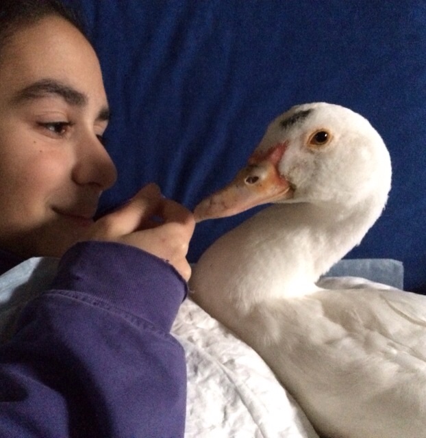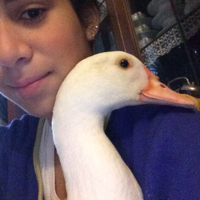 Ora è anche un mese e mezzo che sta in giardino con le altre pennutine anche se viene sempre a dormire appiccicata alla mia finestra. Ogni tanto infatti la faccio entrare in casa e la coccolo un pochino. È proprio simpatica, ora devo fare la lotta per farmi vedere le ali, non vuole! Appena cerco di guardargliele si mette ad urlare!!