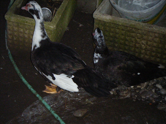 Si sono un maschio e una femmina di anatra muta commerciale , comunque fertili , ancora giovani per deporre .Il maschio è quello con le ali bianche . Ti sono nate a te o le hai comprate da piccole? saluti Mago