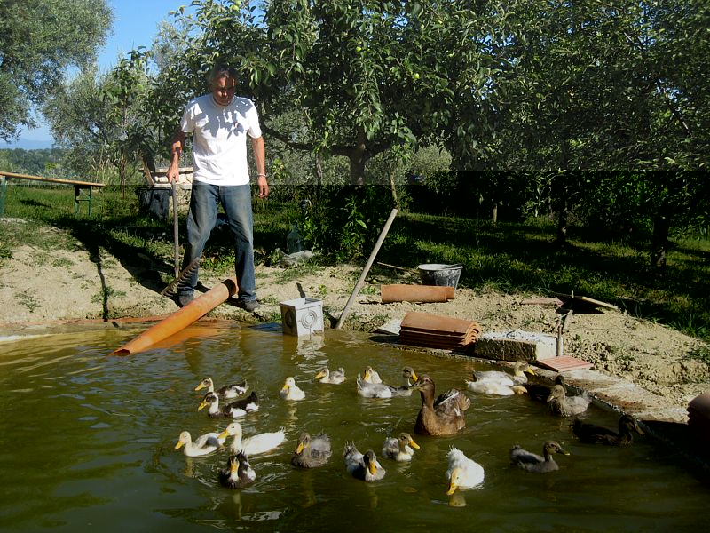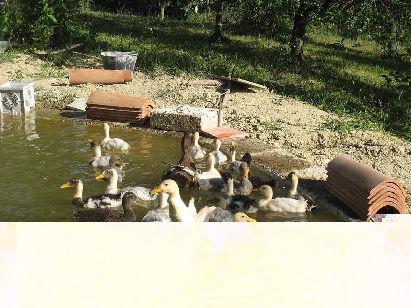 Il laghetto non è stato fatto per loro ma per contenere piante acquatiche, ma si sa che le anatre fiutano l'acqua lontano un miglio e nonostante la disperazione di mio marito che non riusciva a farle uscire io mi sono goduta lo spettacolo!!