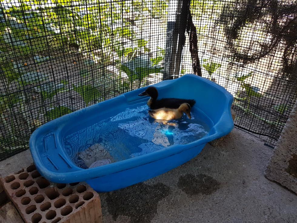 Stamattina ho deciso di costruire un recinto per le paperelle e visto il caldo che fa qui da me ho preso la vaschetta dove facevo il bagno da piccolo è l'ho trasformata in una piscinetta per le piccoline :lol: