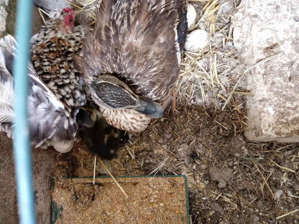 Buonasera ho una cova di anatra in corso e una gallina nana si è messa covare affianco all'anatra ,inevitabilmente hanno mischiato le uova e la gallina ha fatto nascere due anatroccoli che stanno sotto la chioccia .come mi devo comportare? Nasceranno altri anatroccoli e le uova che stanno sotto all'anatra che fine faranno ? Se qualcuno ha avuto esperienze simili mi aiuti non do come comportarmi