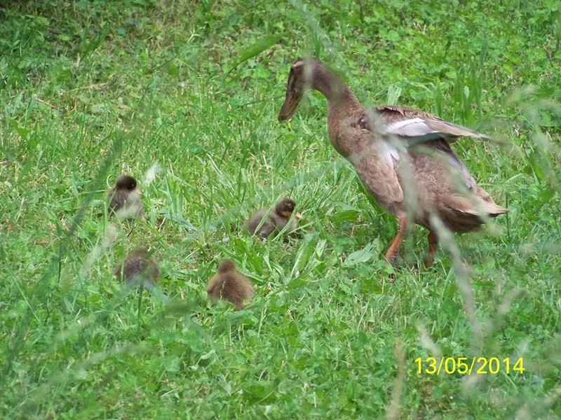 il mio maschio ha provato qualche volta a beccarli (tieni conto che comunque non fanno assolutamente male quando beccano, non come le galline!)...però adesso ha accettato l'idea e non gli fa più nulla! ecco una foto dei 4+anatra nel prato!oggi la ha portata fuori tutto il giorno!e quanti bagnetti!! l'unico problema che ho è la loro difficoltà a salire sulla "scaletta" per entrare nel pollaio perchè fisicamente non hanno problemi a farlo ma non capiscono che devono salire li e vanno a ficcarsi sotto al pollaio!!!uufff così ogni sera bisogna "metterli a letto"...devo decidermi a modificare la scaletta!ma non ho molto tempo!!