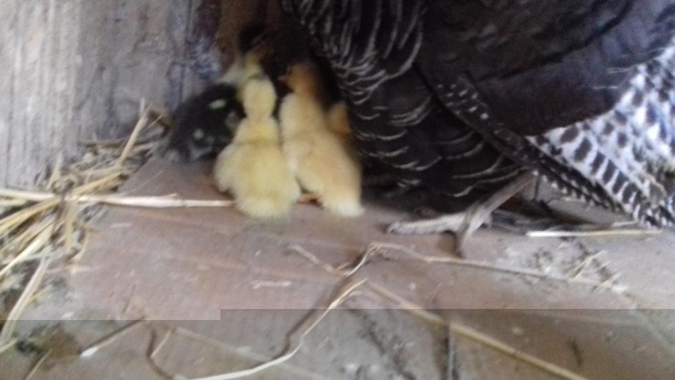 A parte gli scherzi, la mamma è bravissima come l'altra volta quando ha covato i Tacchini, l'unica pecca è che becca molto di più dell'altra volta, da certe beccate!!!