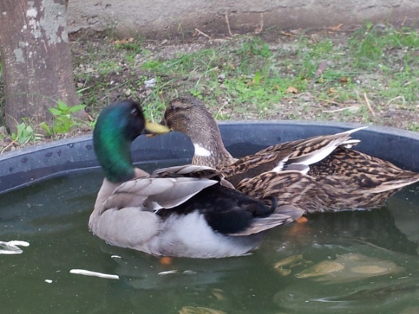 buon giorno a tutti... poche settimane fa un mia amica mi diede in regalo un coppia di germani reali, il maaschio puro ,però la femmina a mio avviso germanata, controllata bene e paragonata con una germana pura ho notato che erano ''quasi'' identiche allora: il peso meno di 750 gr , la classica '' forma a goccia'' quando era in riposo ,comportamento aggraziatoo , specchio alare marrone, l'unica differenza che c'era tra le due era che una (quella che mi è stata regalata) aveva una striscia grande nel petto bianca, chiedo alla mia amica, ed era come dubitavo ovvero un incrocio tra germano reale e mignon ,e con ciò si spiegava tutto, anche perchè in passato quando avevo qualche germanata,allora incrocio con la pechino , i soggetti avevano becco piu lungo, peso maggiore,etc. Ora mi chiedo può essere considerata germano reale puro , o solamente a metà?