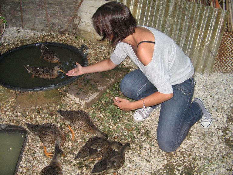 Marco, ecco la foto che volevo mostrarti! Non è recentissima, ma è per farti vedere che mangiano dalle mie mani. Sono affettuosissimi e, ogni volta che mi sentono arrivare fanno un gran casino