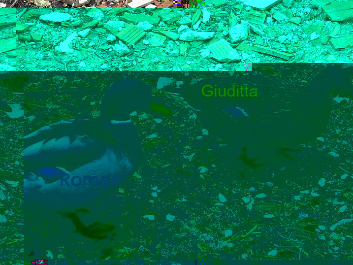 Grazie per i complimenti!  Lolita e Giuditta le ho comprate da un allevatore (e salvate dal forno con le patate!) Romeo e Palmiro sono figli di Gastone, marito di Lolita: un germano reale selvatico, atterrato moribondo nel mio giardino mentre migrava verso lidi migliori, durante la bufera di neve dello scorso inverno febbraio 2012. Da quel dì non se n'è più andato e potrebbe farlo perché ha le ali integre e il recinto per metà è aperto. Perché parli di permessi? Non sapevo neppure che occorresse avere dei permessi....