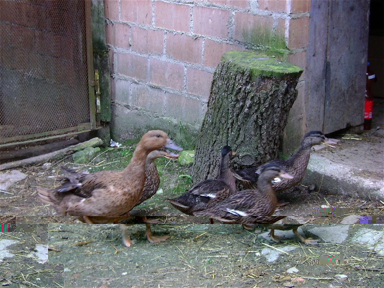 Le due dietro sono le grandi (la germano reale non si vede bene, si intravede solo il becco), mentre quelle 3 avanti sono le piccole...