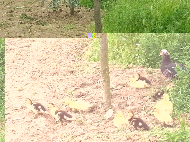questa è una mia vecchia nidiata di anatre mute! la madre è barrata! gli anatroccoli che hanno ereditato il gene barrato sono quelli bianchi con becco scuro e coda scura!