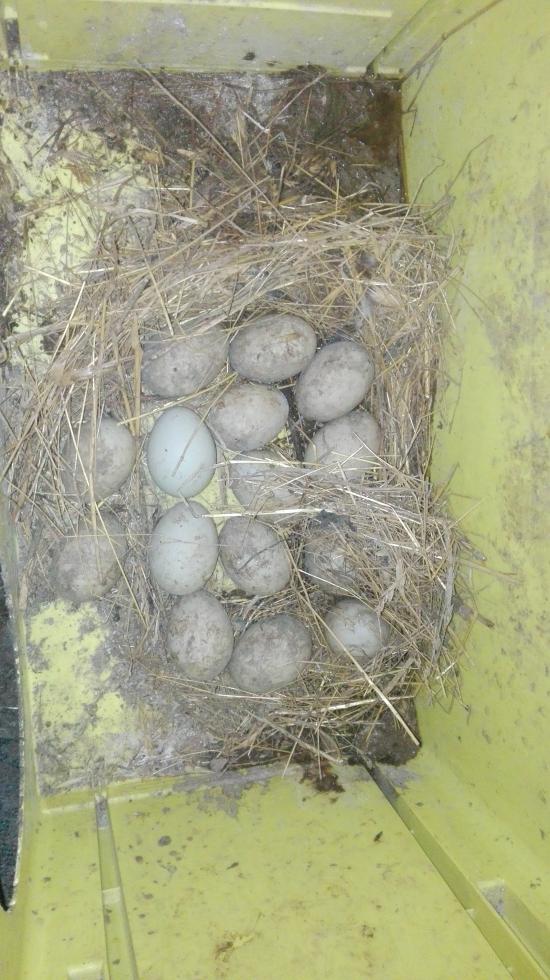 Ok, allora inserisco più paglia all'interno. Adesso non saprei distinguere quali sono le uova più vecchie da quelle nuove, quindi aspetto, vediamo, poi magari ne tolgo un po a caso sperando che covi.