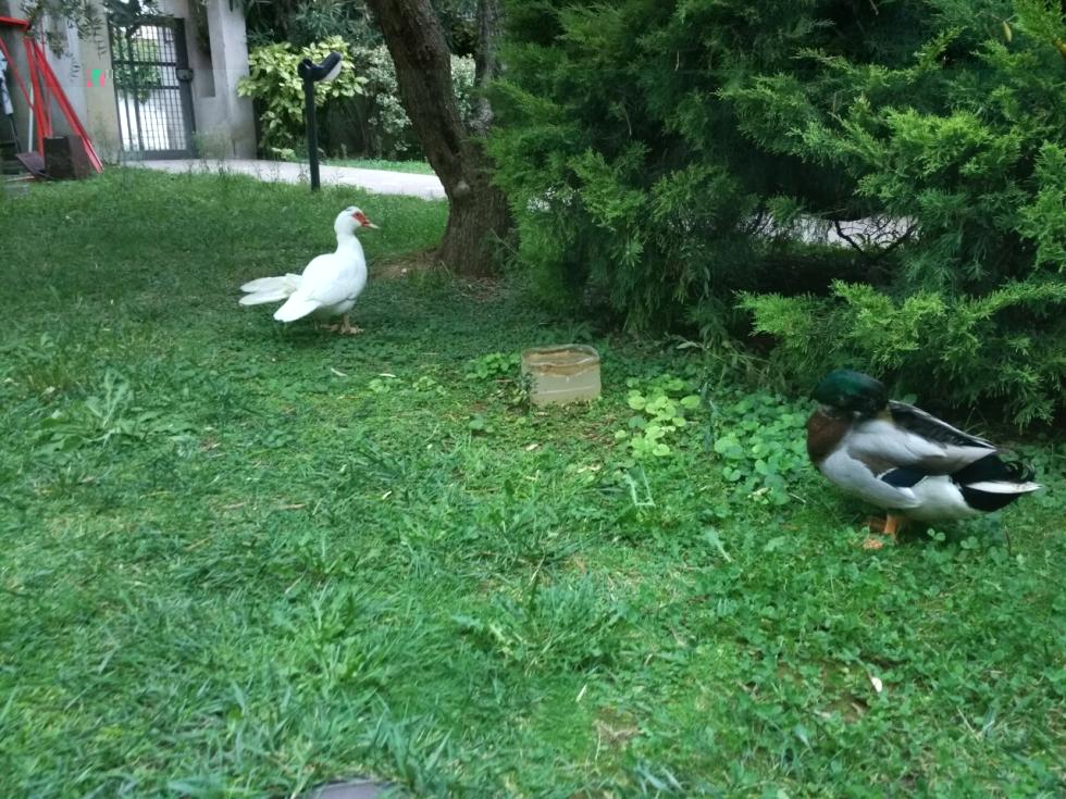 Le anatre sono libere di scorrazzare e sporcare per tutto il giardino di casa 24ore al giorno.