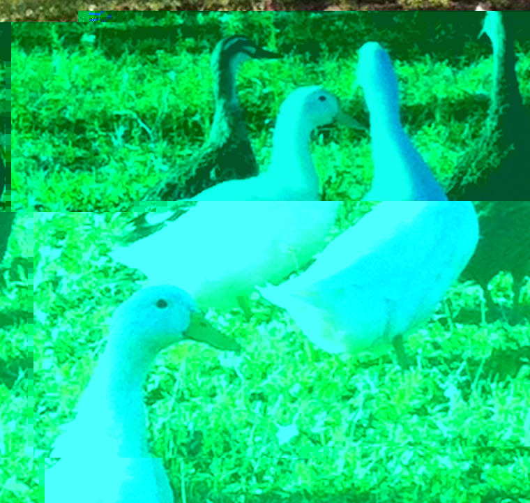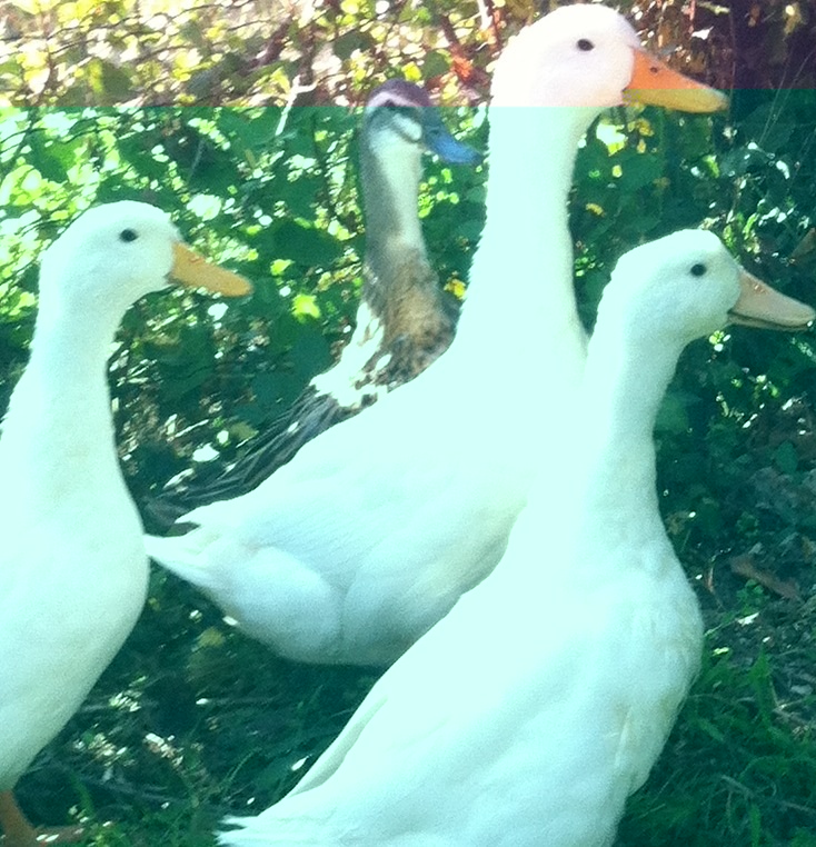 Ciao Alex! E bianche sono assolutamente tre Pechino Americane, poi ci sono quelle due brune, quella col sopracciglio e la gola bianca è una germanata, invece quella scura è una Corritrice Indiana, anche se non propriamente in standard, mi sembra che si porti un po' bassa e poco eretta... Sono comunque dei bellissimi animali, complimenti Ciaoo